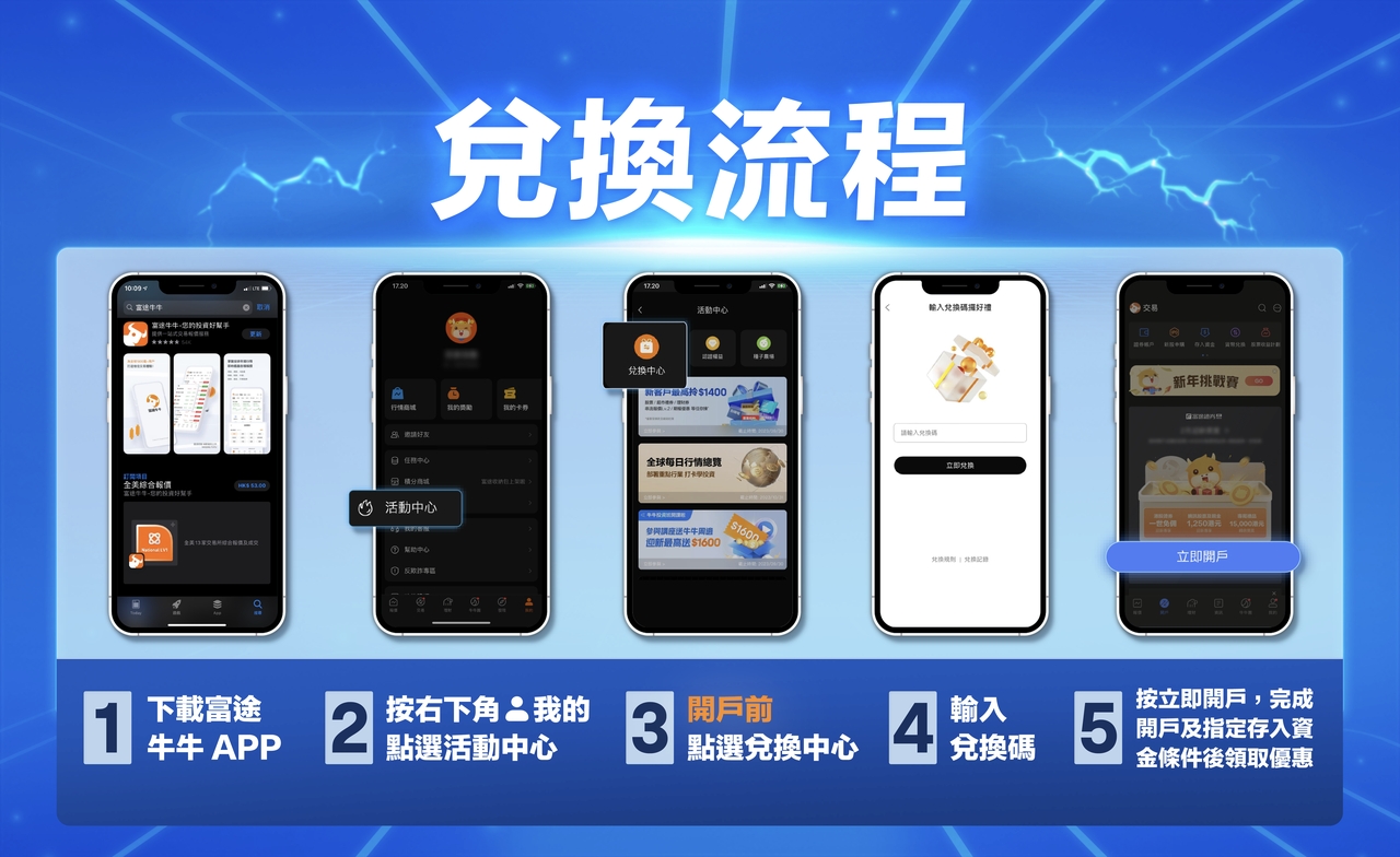 - 下載【富途牛牛】-注冊登錄-點擊右下角我的-活動中心-兌換中心